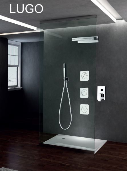 Douche encastrable, mitigeur, cascade et jets de massages - lugo chrome