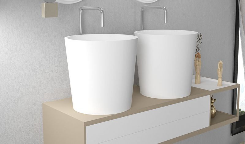 Denne kollektion er lavet med Solid Surface-materialet, hvid i farven og meget glat at røre ved. Den har en bred vifte af modeller, der tilpasser sig ethvert miljø.
