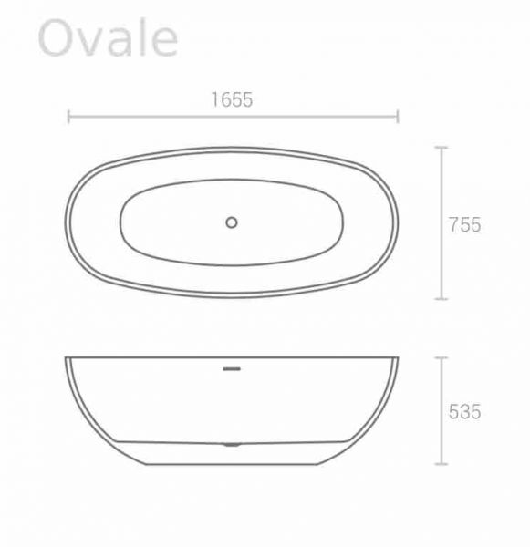 Fritstående badekar, 1655 x 755 x 535 mm, i mineralharpiks med solid overflade, i mat farve - ovale