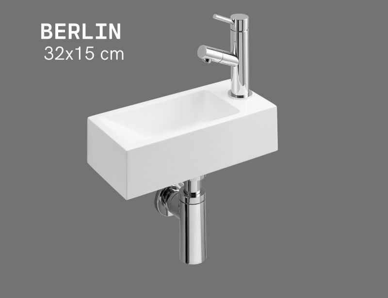 Lave-mains ultra-compact 32x15 cm résine minérale blanc berlin droite