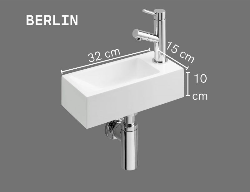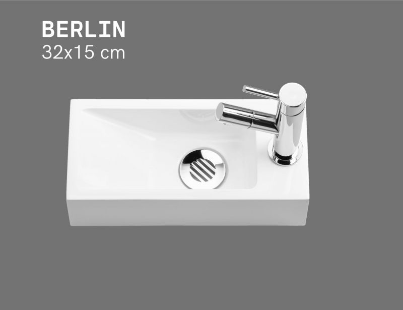Optimisez chaque centimètre de vos petits espaces avec ce lave-mains rectangulaire ultra-compact de 32x15 cm, l'un des formats les plus étroits disponibles sur le marché.