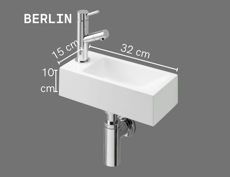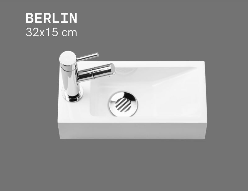 Lave-mains ultra-compact 32x15 cm résine minérale blanc BERLIN GAUCHE