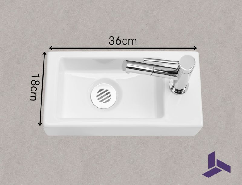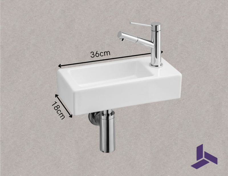 Rektangulær hængende håndvask 36x18 cm – Glanset hvid keramik