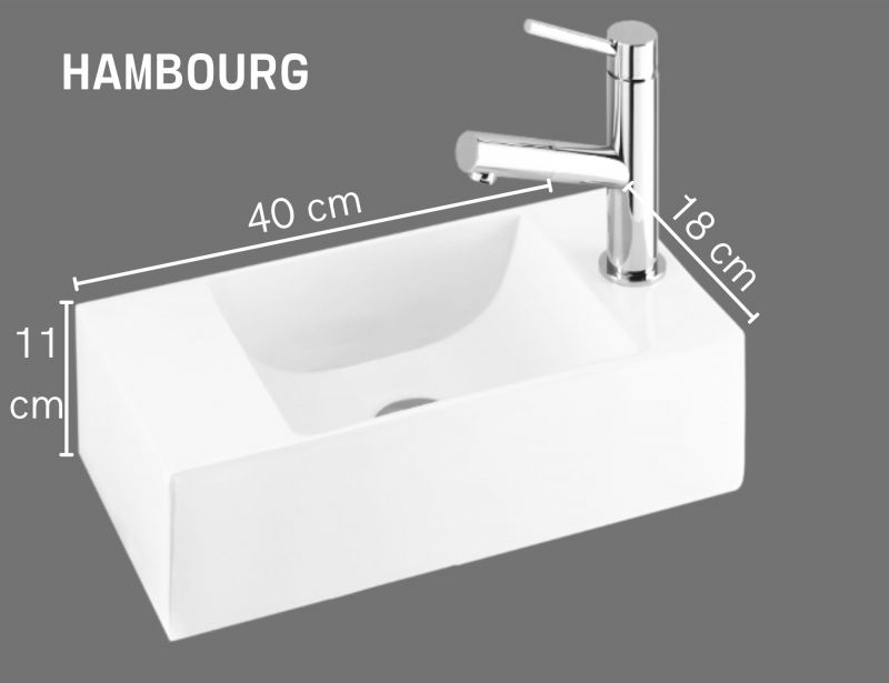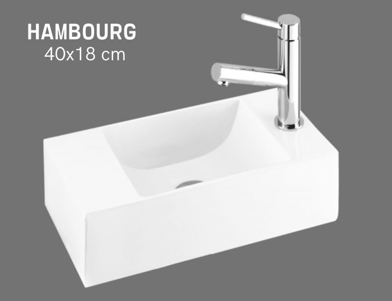 Lave-mains design 40x18 cm suspendu resine blanche | hambourg droite