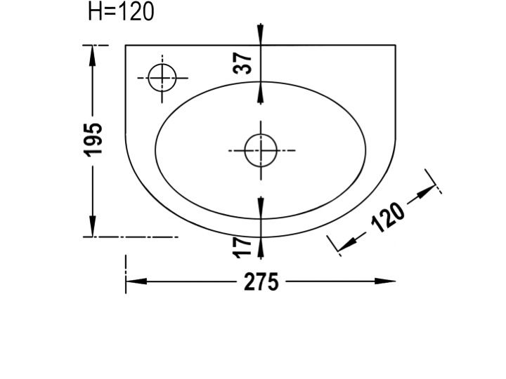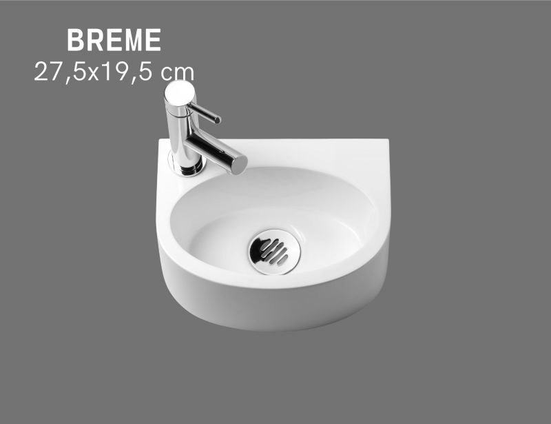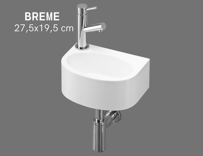 Lave-mains suspendu compact 27,5x19,5 cm breme gauche