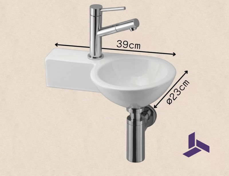 Rund håndvaskmaskine, keramik, ophængt 23x39 cm | bonn 23 gauche