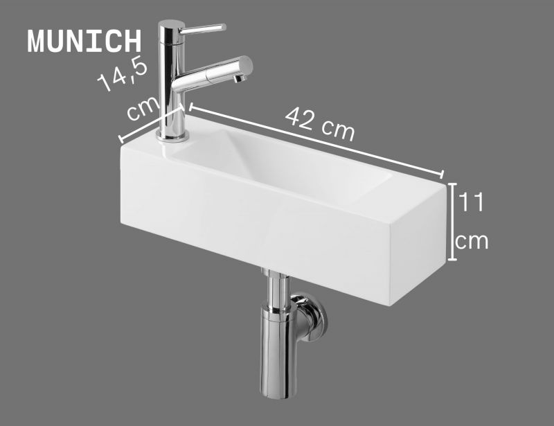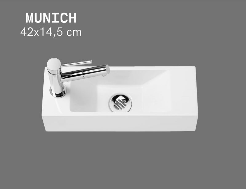 Lave-mains suspendu 42x14,5 cm en résine blanche, ultra-compact munich gauche