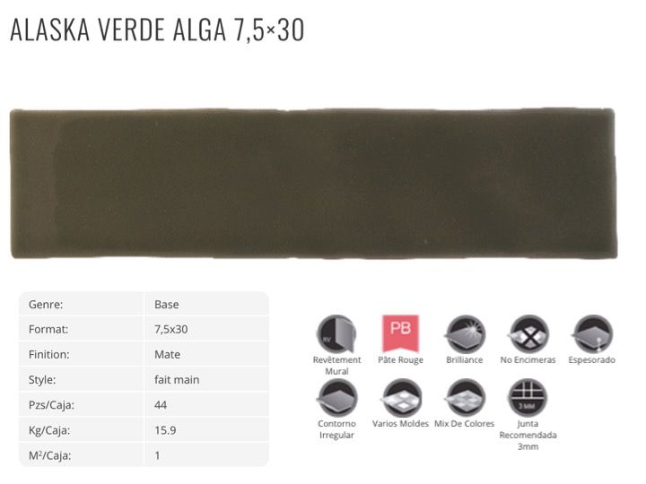 Alaska 7,5 x 30 cm - carrelage mural, rectangle rustique, brillant
