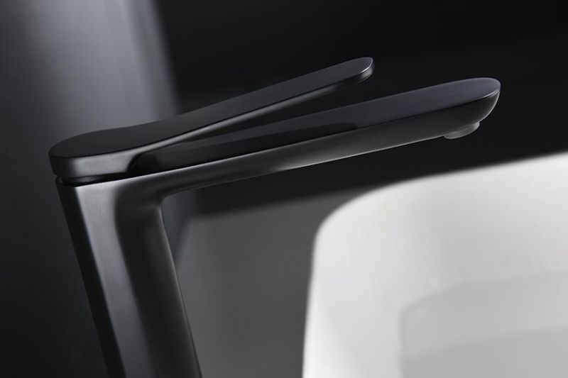 LOGRONO blandingsbatteri i mat sort farve til håndvaske i badeværelset har buede og runde linjer, der giver badeværelset komfort, elegance og velvære.