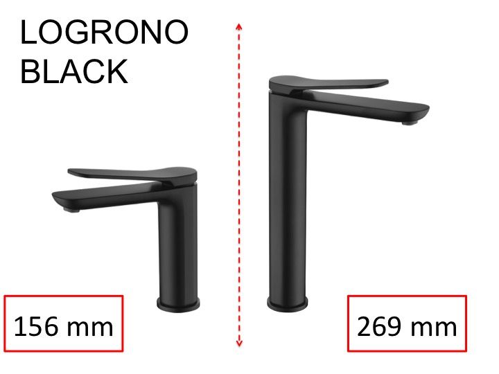 Mat sort håndvaskhane, armatur, højde 156 og 269 mm - logrono noir