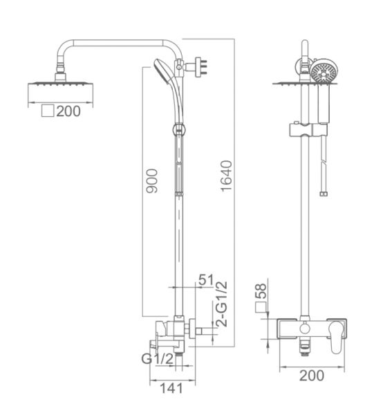W kwadratowej stali nierdzewnej 20 cm. , wyjątkowo płaski, chrom i antilime