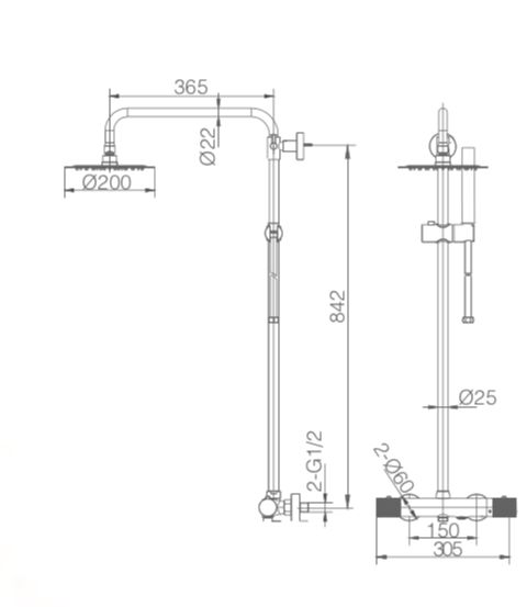 Dłuższy drążek prysznicowy z odpływem wannowym ze stali nierdzewnej S.304 z możliwością przedłużenia 115/165 cm.