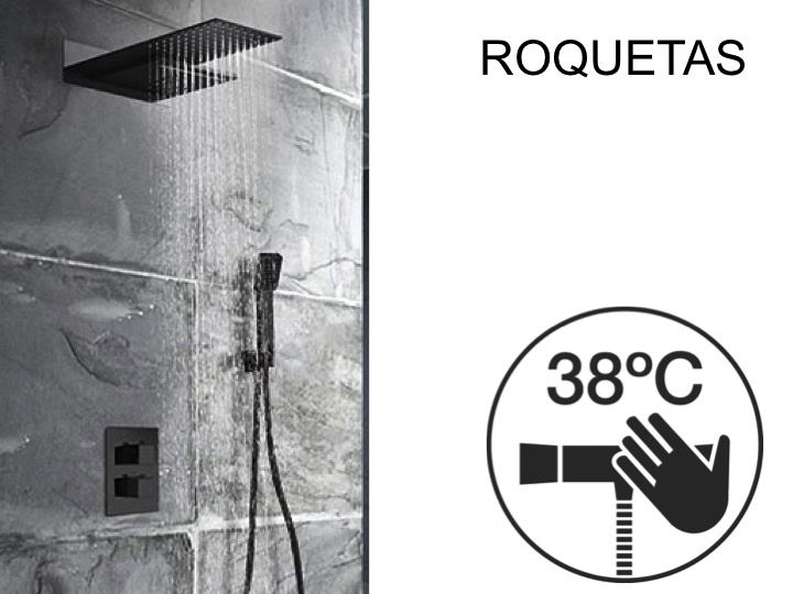 Ingebouwde douche, thermostaatkraan, regenhoes en waterval - roquetas black