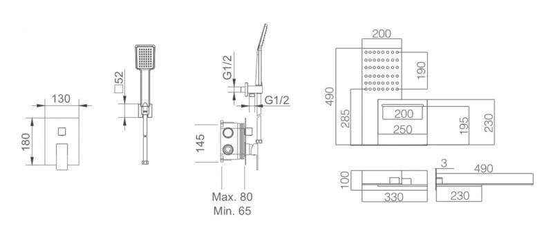 De doucheset, thermostatisch, inbouw, ROQUETAS is uitgerust met de nieuwste TURN CLEAN SYSTEM-technologieën (gepatenteerd).