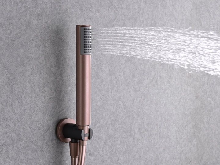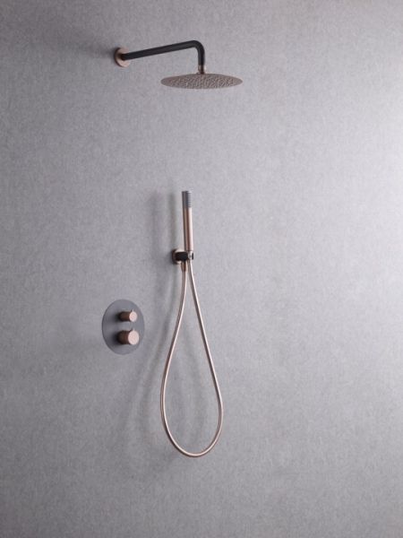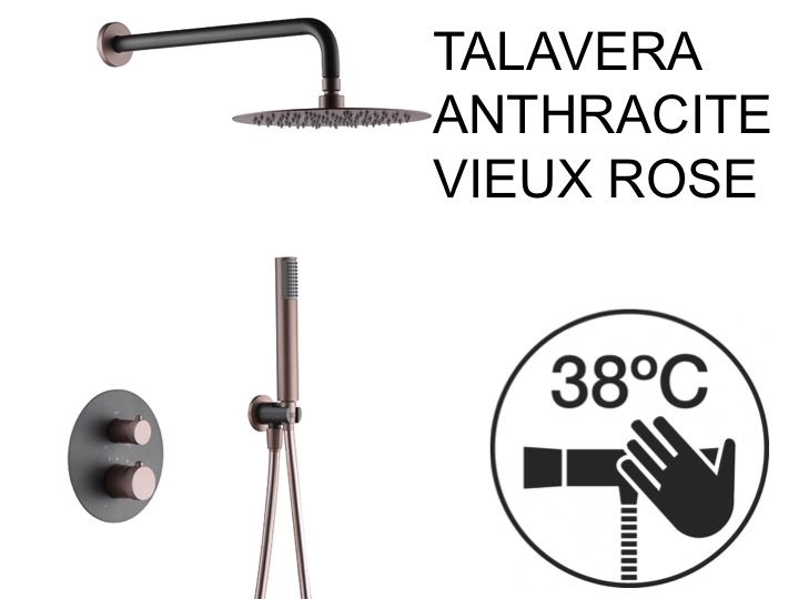 Douche encastrable, thermostatique et pommeau pluie de douche Ø 25 cm - talavera anthracite / vieux rose