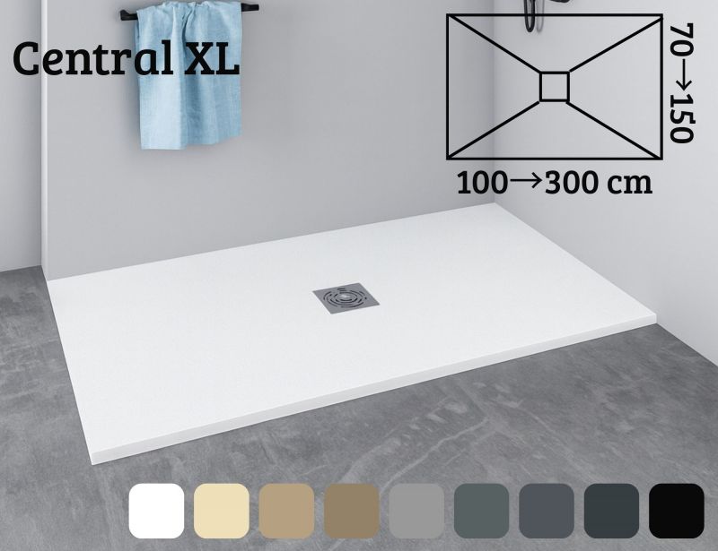 Receveur de douche evacuation centrale 130 cm resine extra plat - xl central