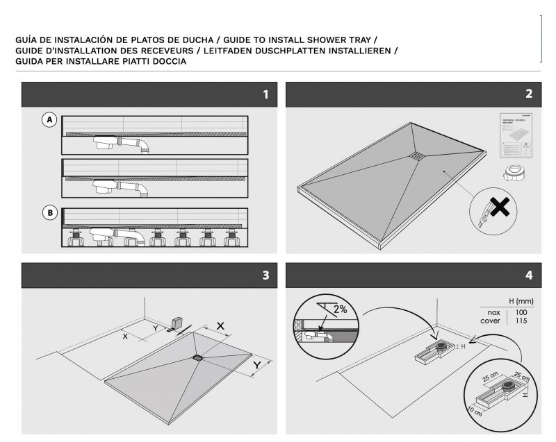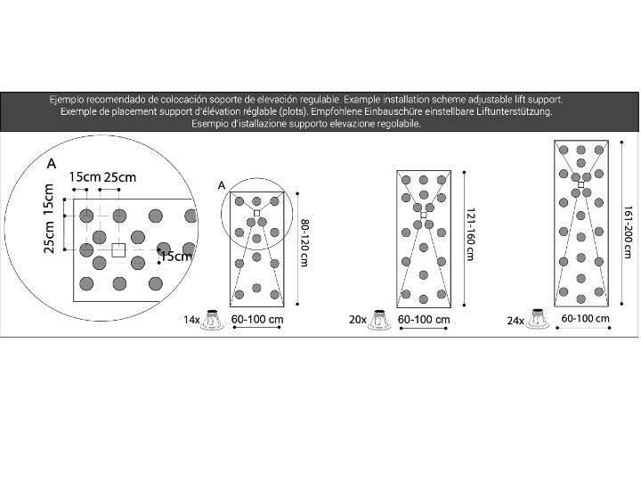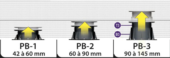 Wysokość tych wsporników brodzika jest regulowana. Różne modele oferują zakres regulacji od 18 mm do 315 mm, dzięki czemu można je dopasować do różnych konfiguracji.