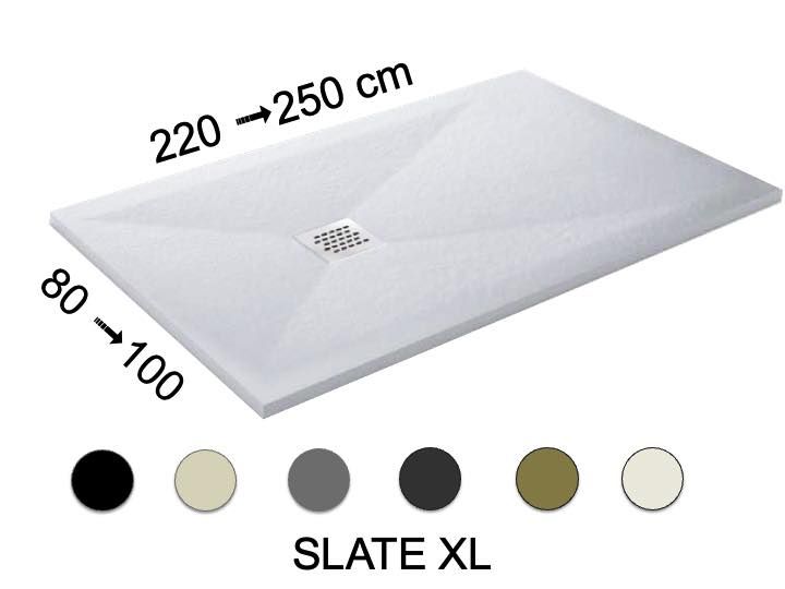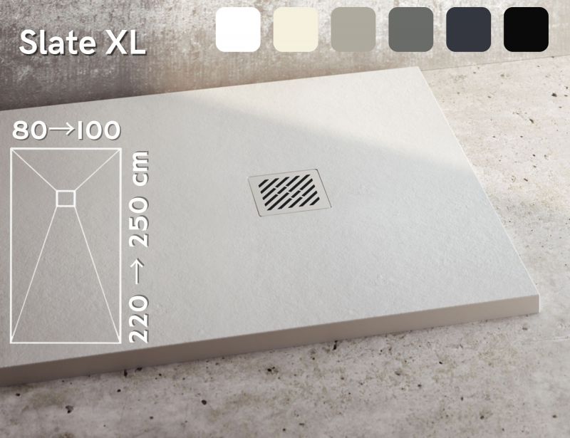 SLATE XL-brusekar i resin er fremstillet af en legering af resin og mineralske fyldstoffer. Den strukturerede, skridsikre overflade giver et ekstra touch til ethvert badeværelse. De kan tilpasses med hensyn til dimensioner, store størrelser og farve. Og de er kun tre centimeter høje for at gøre adgangen til bruseområdet lettere for personer med nedsat mobilitet. Når du vælger brusekar i resin.