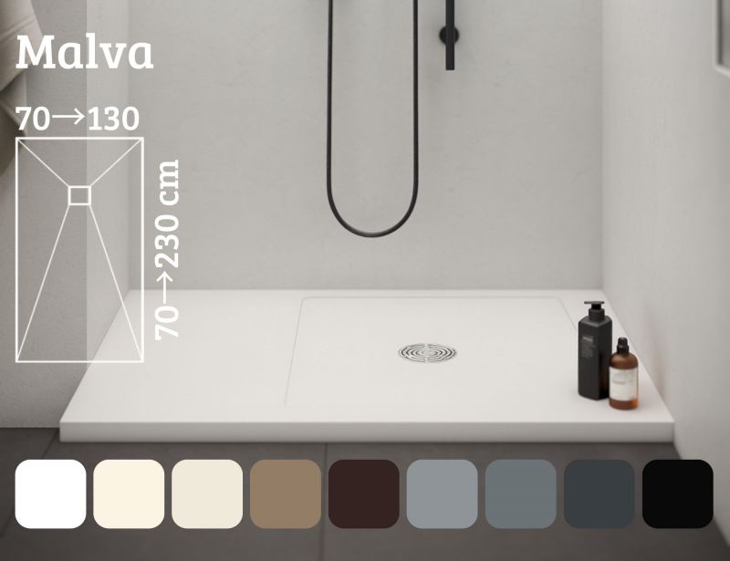 La série MALVA est conçue pour s'adapter à votre style, vous permettant de personnaliser complètement votre espace de douche et de créer un rendu unique. Avec sa forme nette, ce receveur de douche est idéal pour s'adapter à des structures à piliers ou en faux carrés.