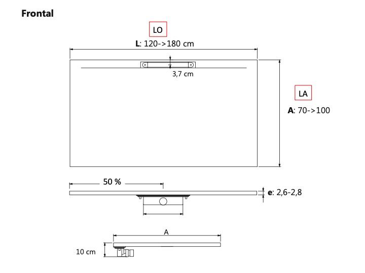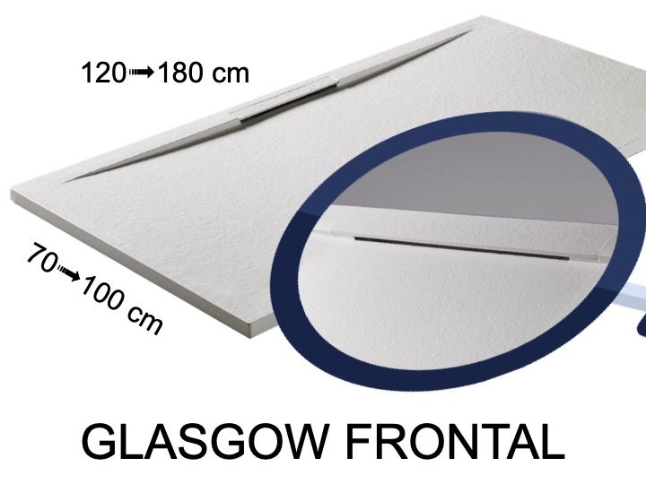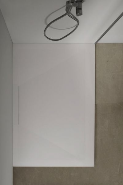 Brusebakke, med designerkanal, med sideafløb, i Akrytan® mineralharpiks, specialfremstillet, skiferfinish.