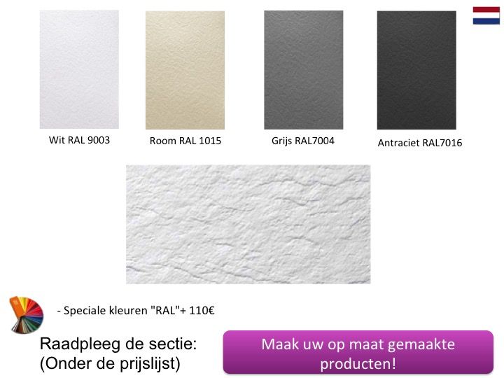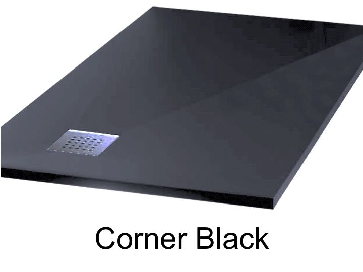 Douchebak, met hoekwaterafvoer, sifon in de rechterhoek 25 x 25 cm, leisteeneffect, antislip.