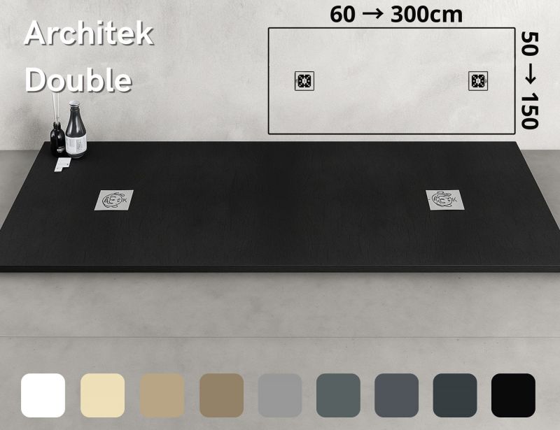 Receveur de douche, avec double évacuation, extra plat, en résine minérale Akrytan®, fabrication sur mesure, finition lisse
