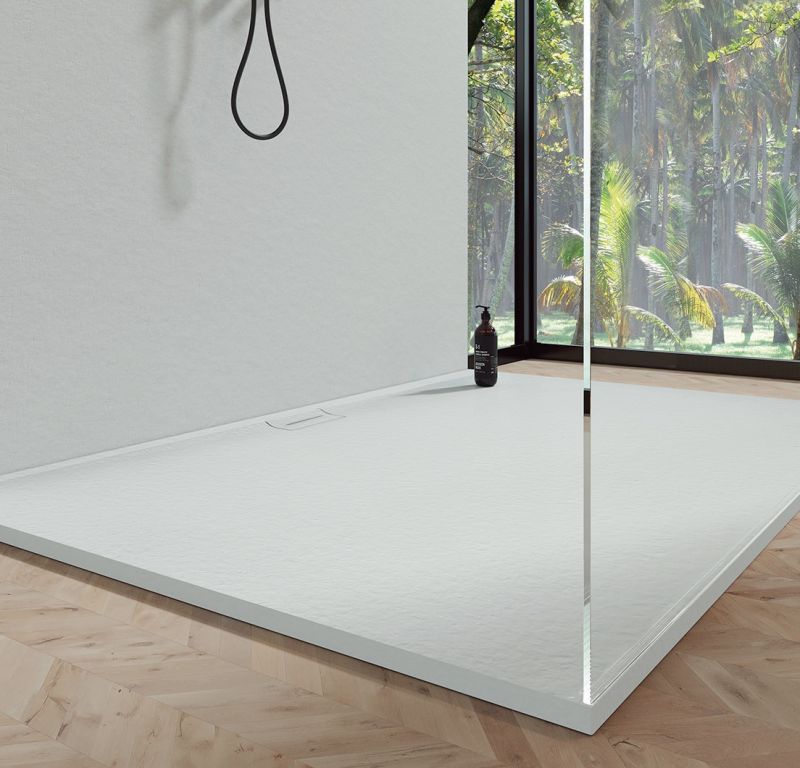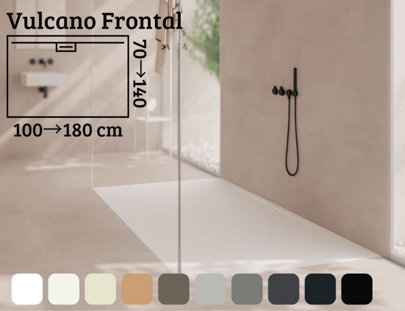 Les receveurs de douche, VULCANO, sont fabriqués, en résine écologique et durable Acrystone®. Ils sont réalisable en sur mesure ou re-coupable.