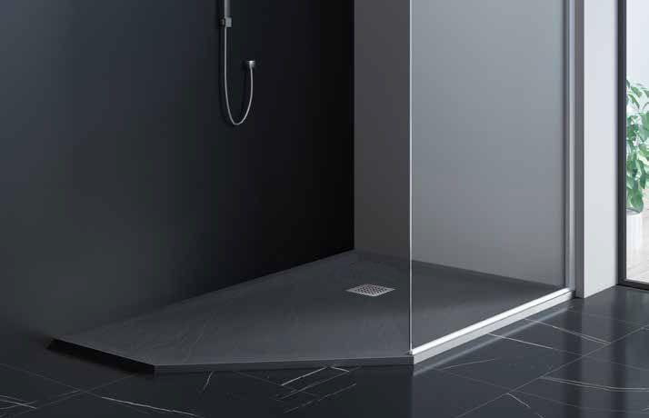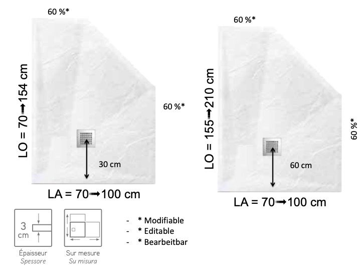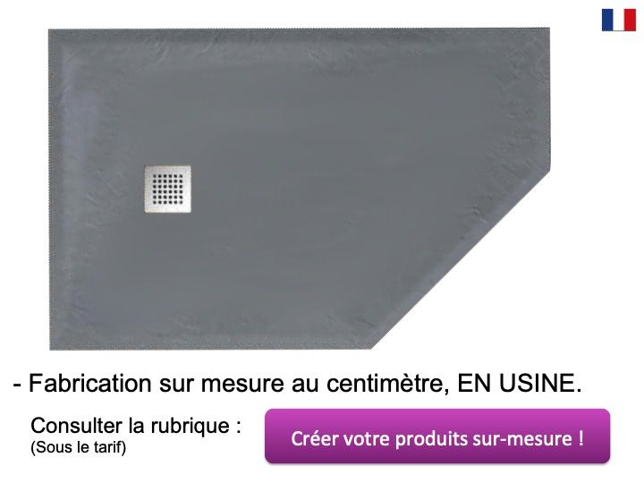 le receveur de douche PENTAGONAL, n'est pas coupé, mais fabriquer à la demande, avec plat en façade, pour la pose d'une paroi douche.