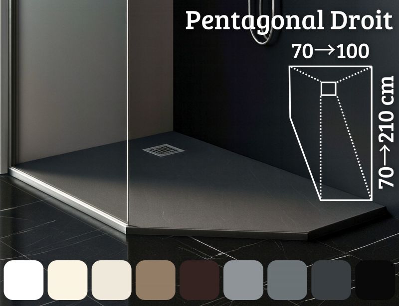 Receveur de douche pentagonal resine extra plat pentagonal droit