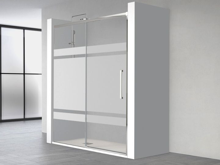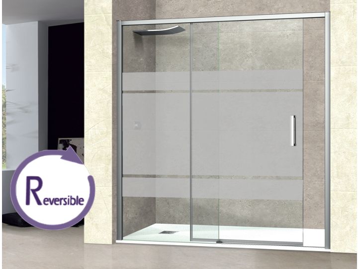 Doucheschuifdeur, montage in nis, bestaande uit een schuifdeur en een vast paneel, omkeerbaar.