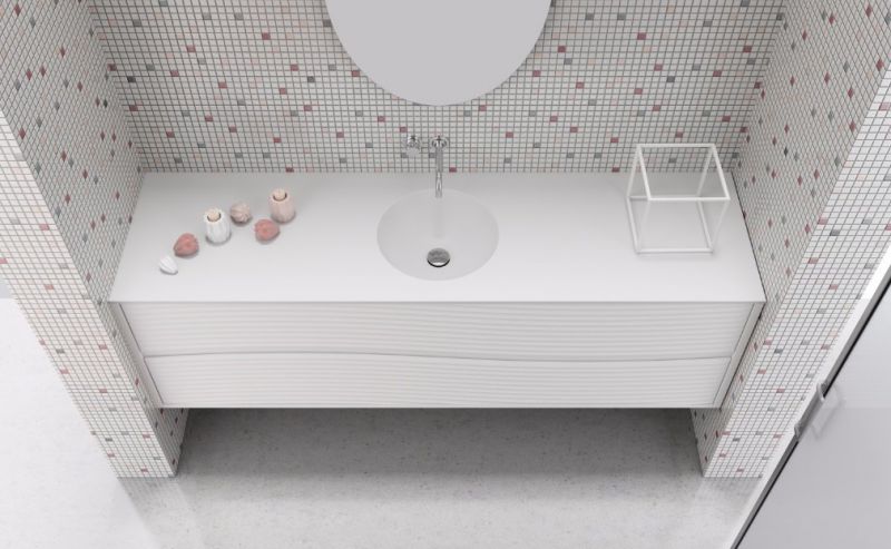 Design håndvask, i mineralharpiks, i DuPont Corian®, Glacier hvid glat mat finish. 10 ÅRS GARANTI