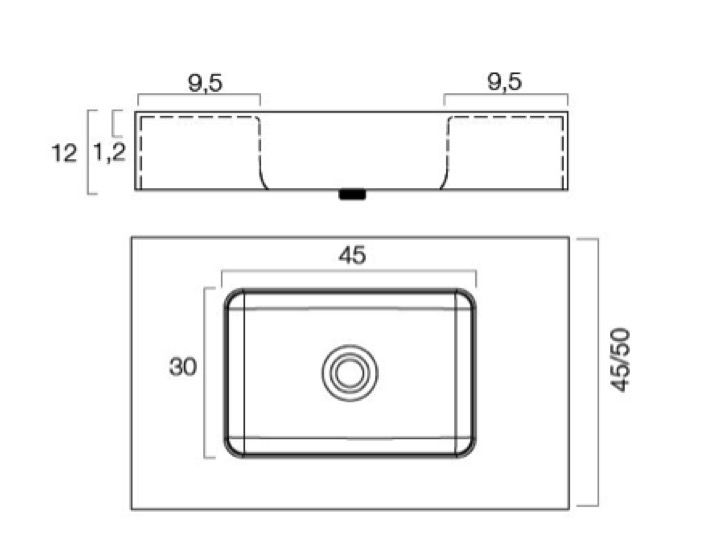 Umywalka, 50 x 100 cm, z corian ® - curvada 45