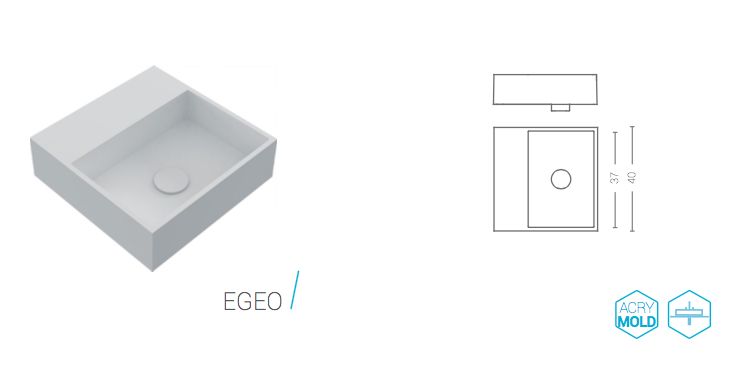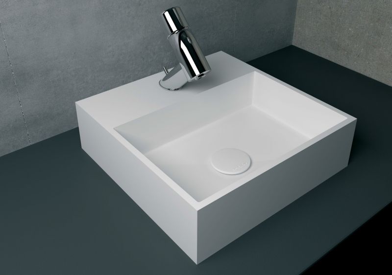 Wastafel op aanrecht, 40 x 40 cm, in solid surface-hars - java