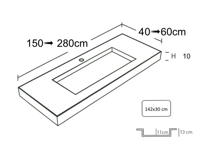 Blat podwójny, 50 x 150 cm, zwieszany lub wpuszczany, w żywicy mineralnej - oba 142