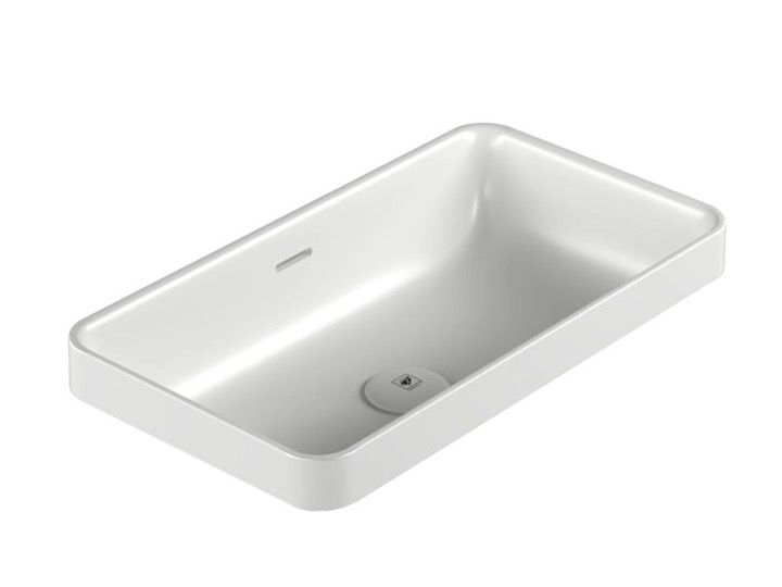 Væghængt eller bordplade håndvask, på badeværelsesmøbler, i OSolid Plus mineralharpiks, glat mat finish.