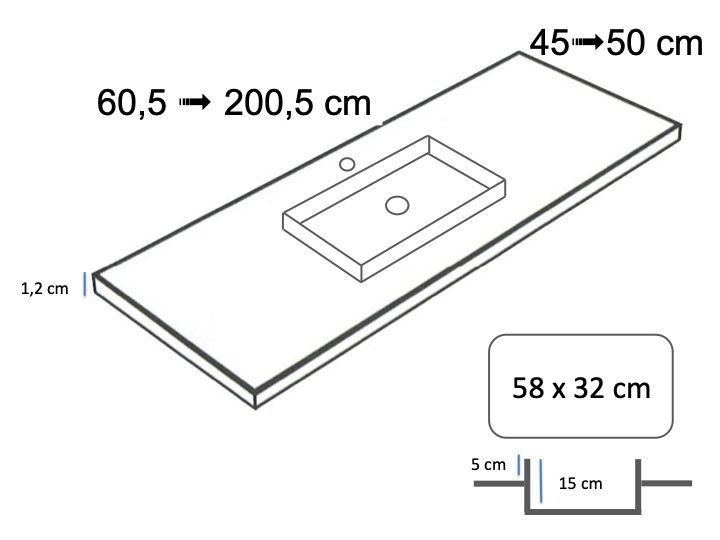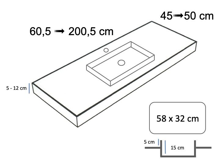 Håndvaskens bordplader, i Osolid Plus harpiks, er lavet af naturlige mineraler og meget modstandsdygtige harpikser.