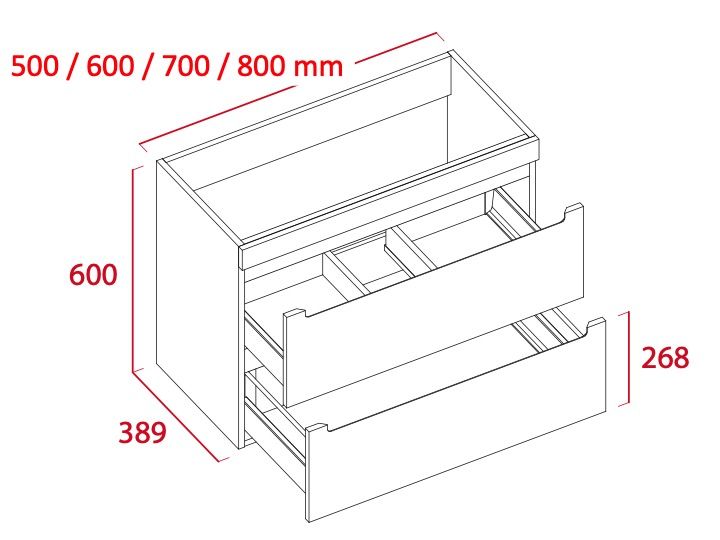 - Bredde: 50 / 60 / 70 / 80 cm.