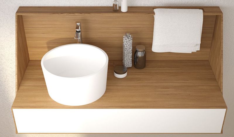 Bordvask, Ø 36 cm, i solid surface harpiks - noxplus