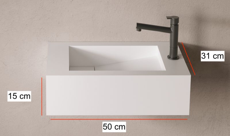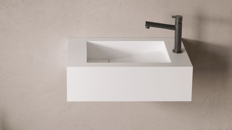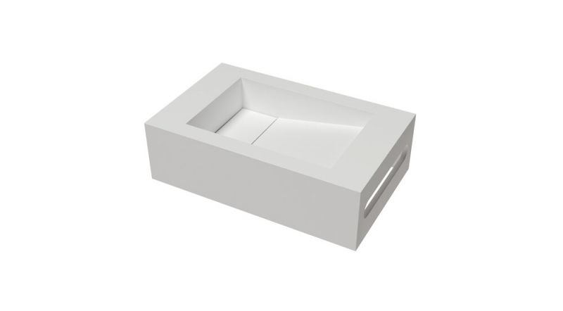 Håndvask, i Solid-Surface mineralharpiks, glat hvid mat finish.