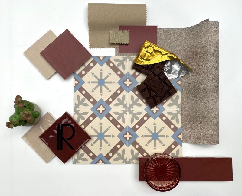 Vægfliser, har en karakteristisk middelhavsgrafik og farver. Vi finder indflydelsen fra zellige stilarter.