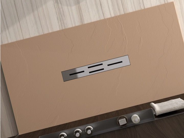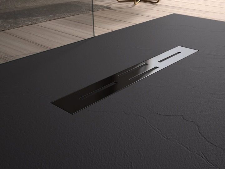Bruseplade 110 cm, central afløb, ekstra flad harpiks - alcala