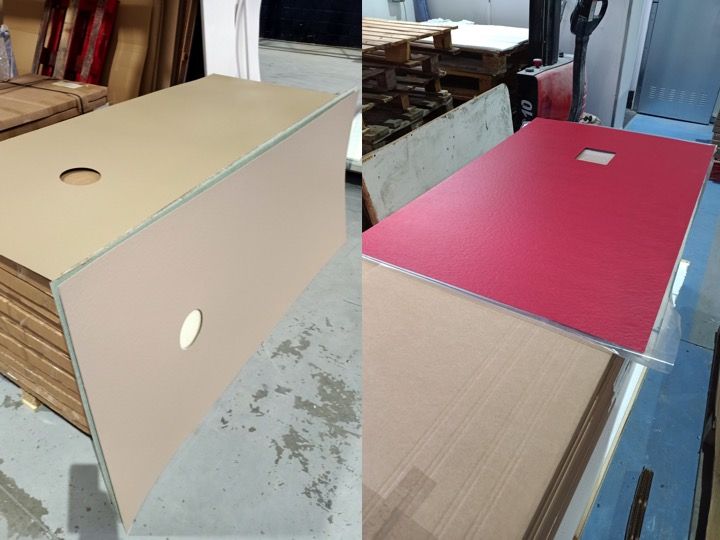 BANENOVA pladen er et ark sammensat af Gel Coat, blandet med glasfiber for at give den den nødvendige modstand.