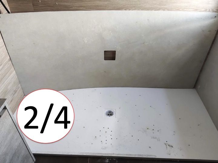 den har STONE tekstur og finish, af brusekar, i mineralharpiks. BANENOVA er 1,5 mm tyk, så installation er mulig i næsten alle tilfælde.
