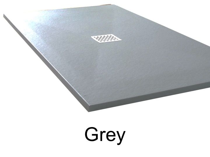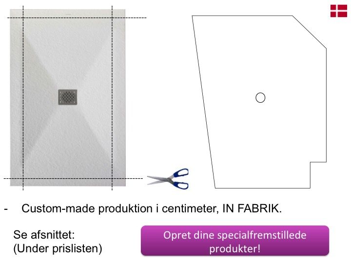 Brusebakker med centralt afløb, lavet af mineralharpiks, lavet til måling, sten effekt, skridsikker.