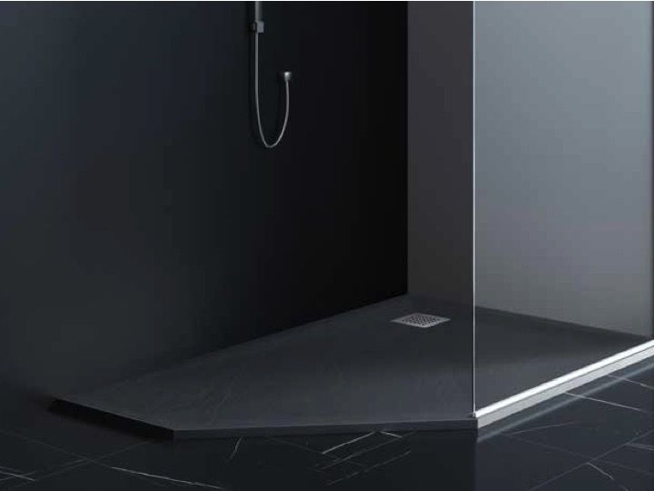PENTAGONE brusekar er ikke skåret til, men lavet på bestilling, med flad front, til montering af bruseafskærmning.