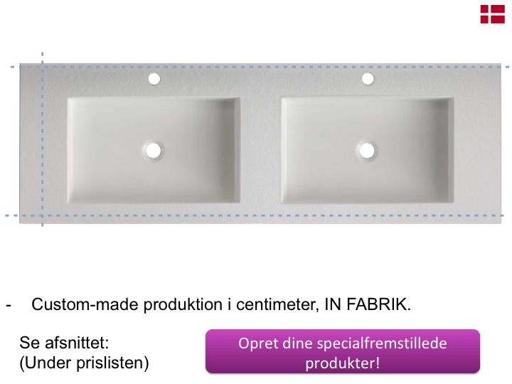 Dobbelt håndvaskeservant, 50 x 130 cm, ophængt eller forsænket - double coper 45