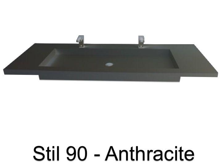 Dobbelt forfængelighedstop, 50 x 190 cm, ophængt eller forsænket, i mineralharpiks - stil 90