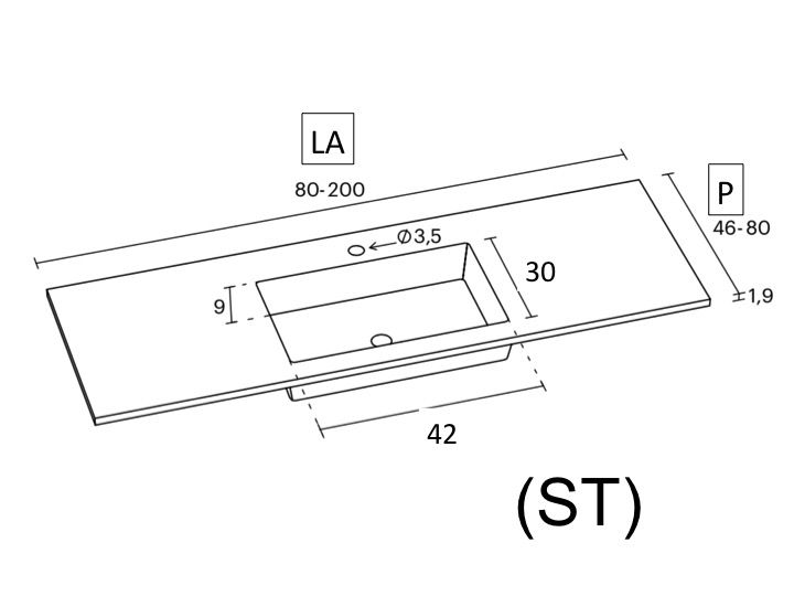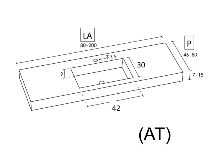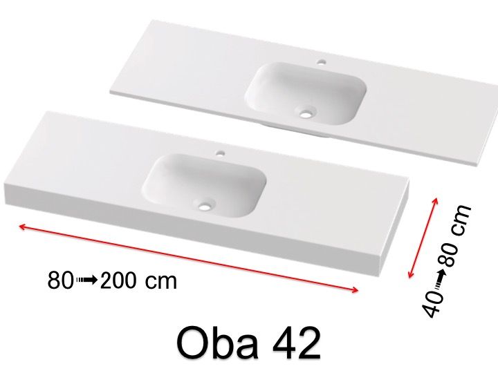 Forfængelighedstop, vægmonteret eller indbygget, i mineralharpiks - oba 42