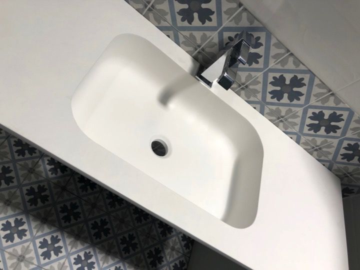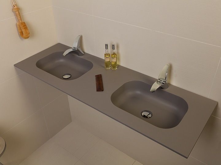 Håndvasktoppene i Osolid Plus-harpiks er lavet af naturlige mineraler og harpiks med høj modstand.