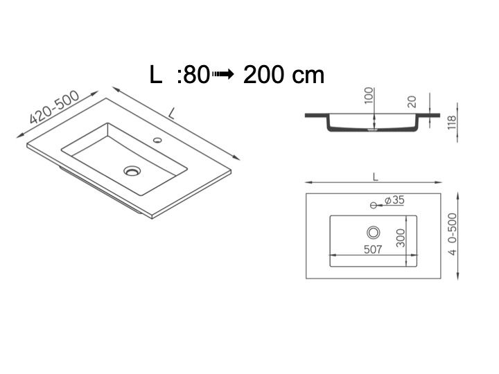 Håndvaskeplade, ophængt eller bordplade, i mineralharpiks - alfa 50